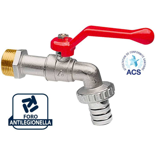 APMRubinetto a Sfera con foro antilegionella per ACS o giardinoDettagli:Rubinetto portagomma da 1/2 maschio in ottone e leva in alluminio