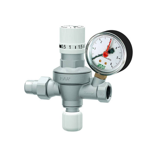 ICMARiduttore di pressione 3/4 attacco manometro 1/4Dettagli:Attacchi laterali sui due lati per manometro da 1/4"gas. Funzionamento a pistone. Sede acc...