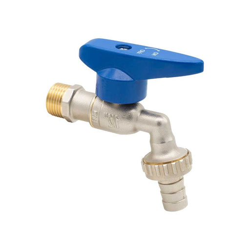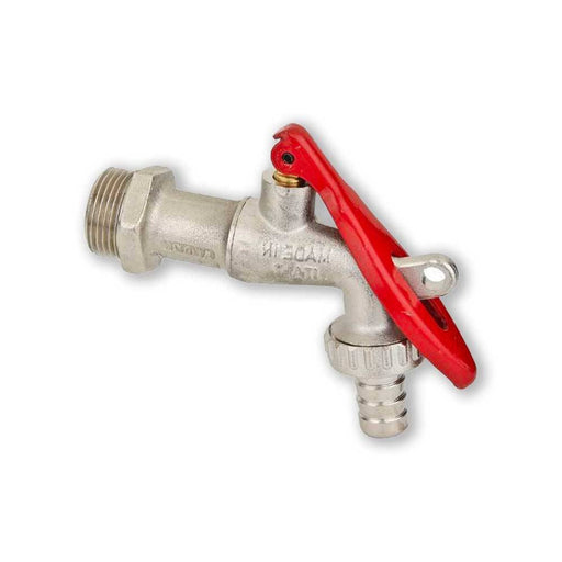 GENERICORubinetto portagomma con portalucchetto, leva nichelataDettagli:Rubinetto portagomma 1/2" maschio portagomma da 3/4 f